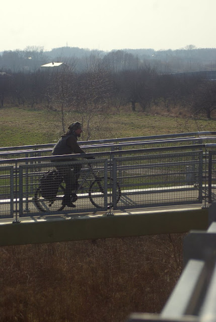 W końcu placki z jabłkami i kanapki z dżemem zjedliśmy przy torach. Tam dopiero był spokój. Dużo jechaliśmy pod wiatr, moja forma padłą na pyszczek i szorowała po ziemi. No ale trzeba się kiedyś rozjeździć, żeby w maju już śmigać setki (oby udało się gdzieś pojechać w długi weekend, może znów Podlasie?). Powrót przez malowniczą dolinką Pisi Gągoliny i dalej skrótem do dworca.